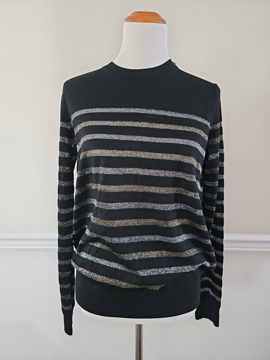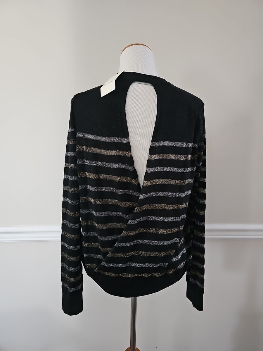 - ZADIG & VOLTAIRE Emma Stripes Crossover Open Back Merino Wool Sweater Top, M / L