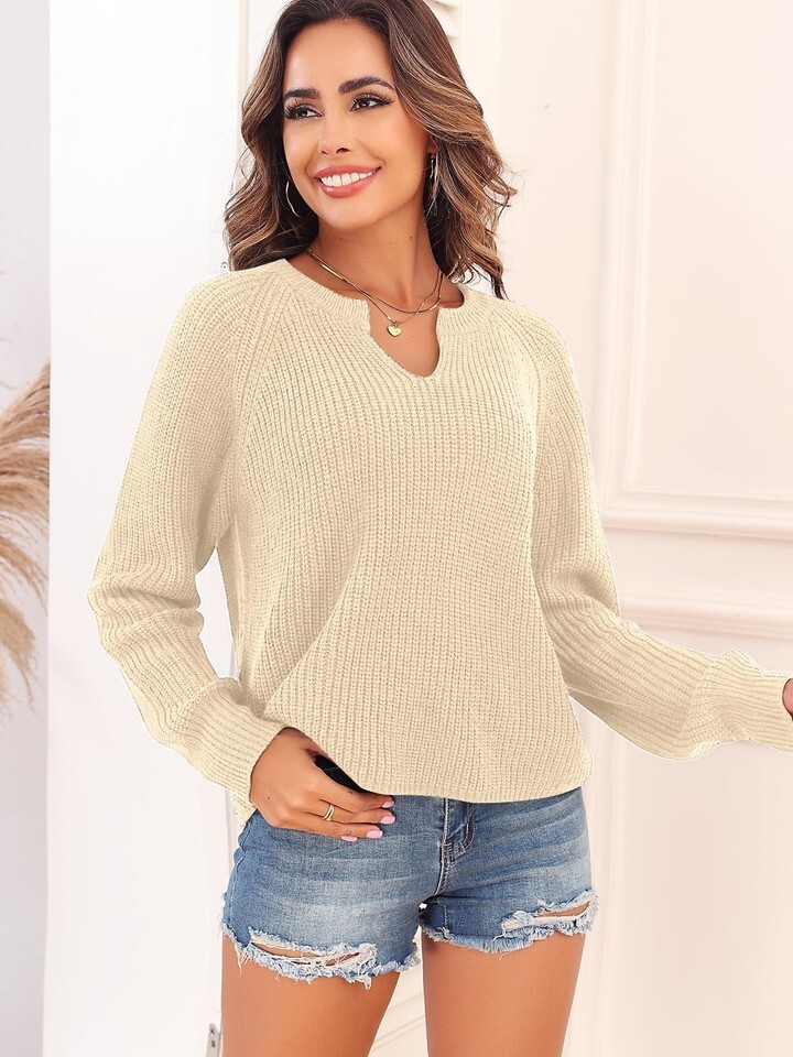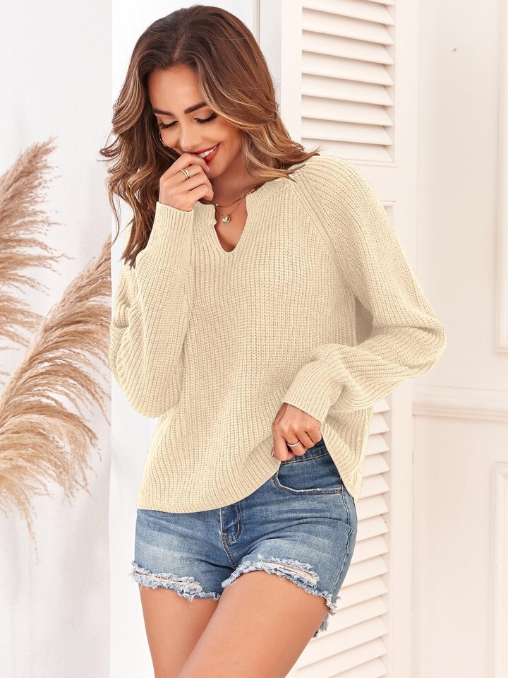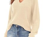 - ZAFUL Apricot Ribbed Knit V Neck Long Sleeve Sweater Size M