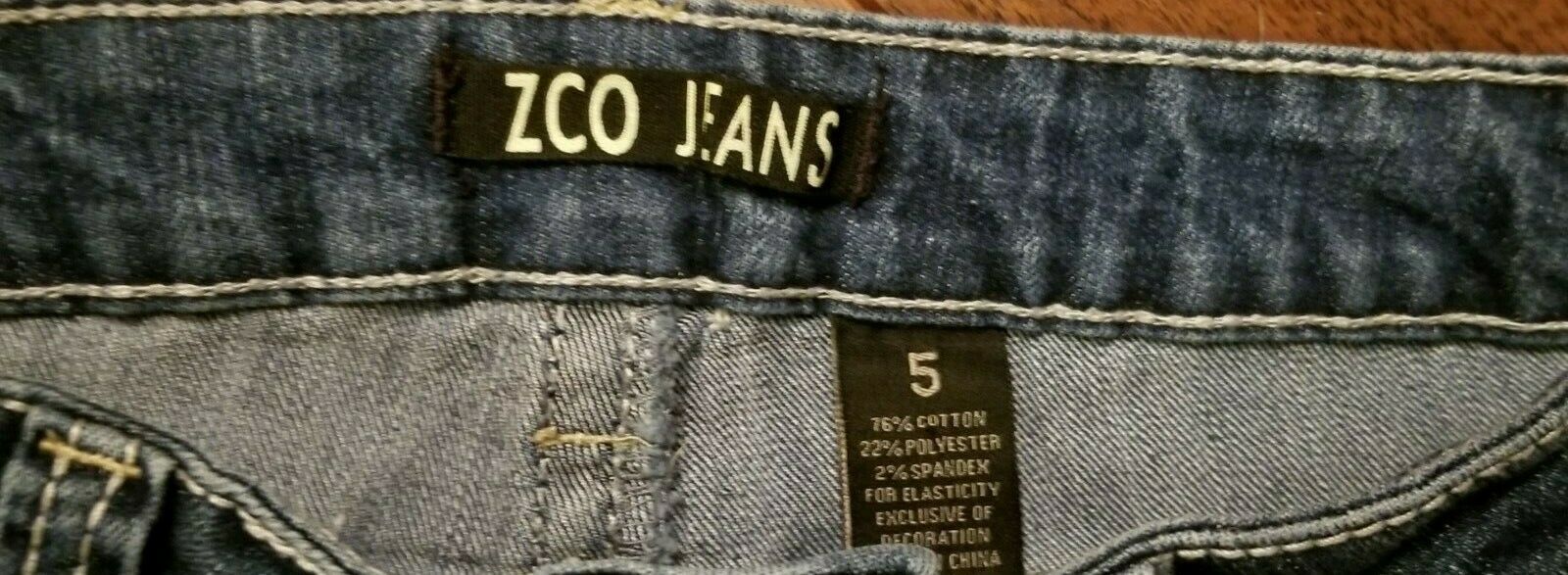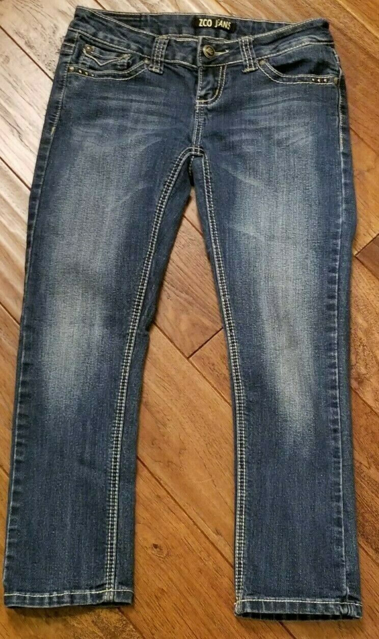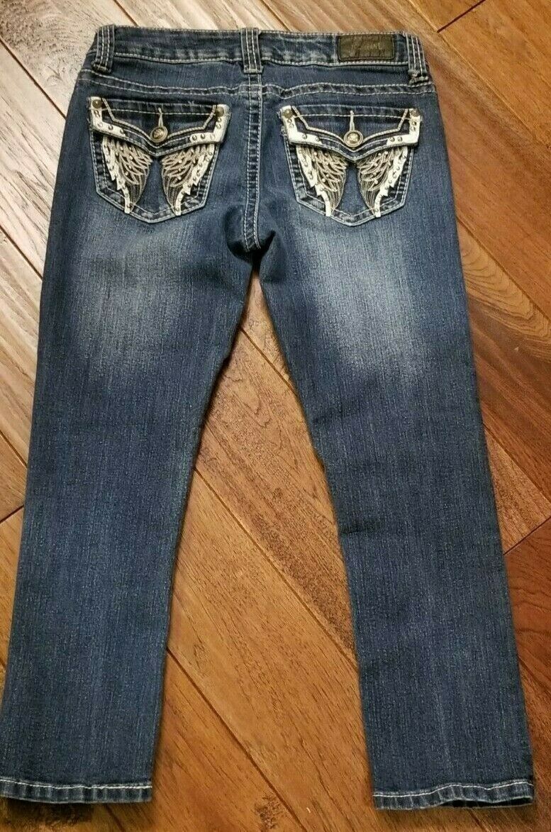 - ZCO Juniors Size 5, inseam 26 Distressed, wings on back pockets Capri Stretch