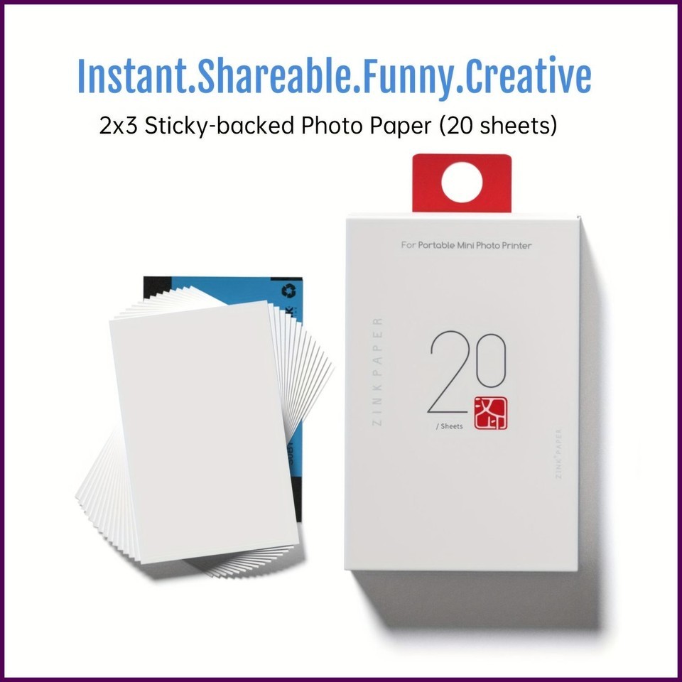 - ZINK Sticky-Backed Photo Paper for HPRT Printer 2x3" – 20/50 Sheets Glossy
