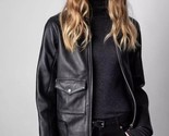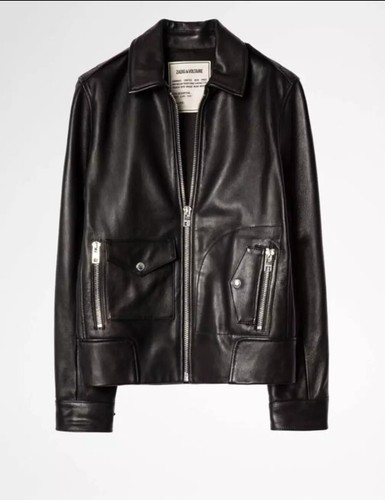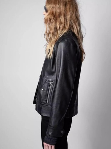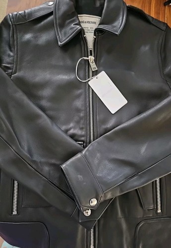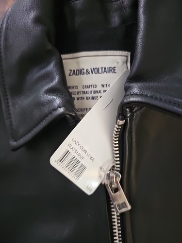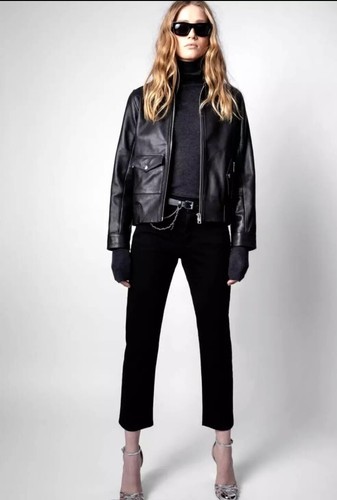 - Zadig & Voltaire Lazy Cuir Lisse Black leather motorcycle jacket $998, sz 38, M