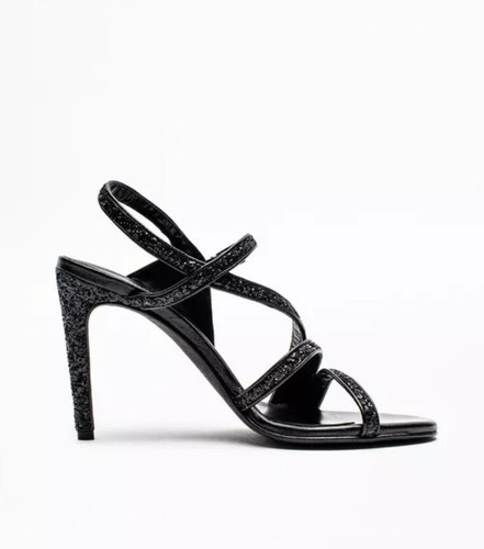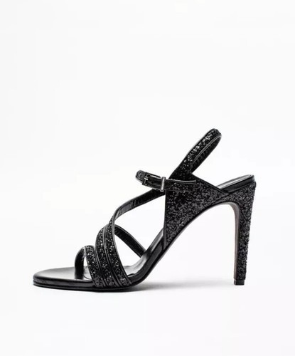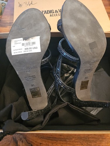 - Zadig & Voltaire Marilyn Dream Black Glitter Strappy Leather Heels Sandals Sz 36