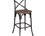 The Zaire collection chairs offer a vintage style inspired by Parisian Bistros chairs. Features: reclaimed wood and metal looks, simple "X" style backrest, wooden seat, slightly flared four-legged base with footrest supports. Handsomely Crafted in Walnut and Antique Black Finish.
