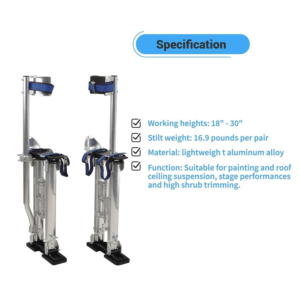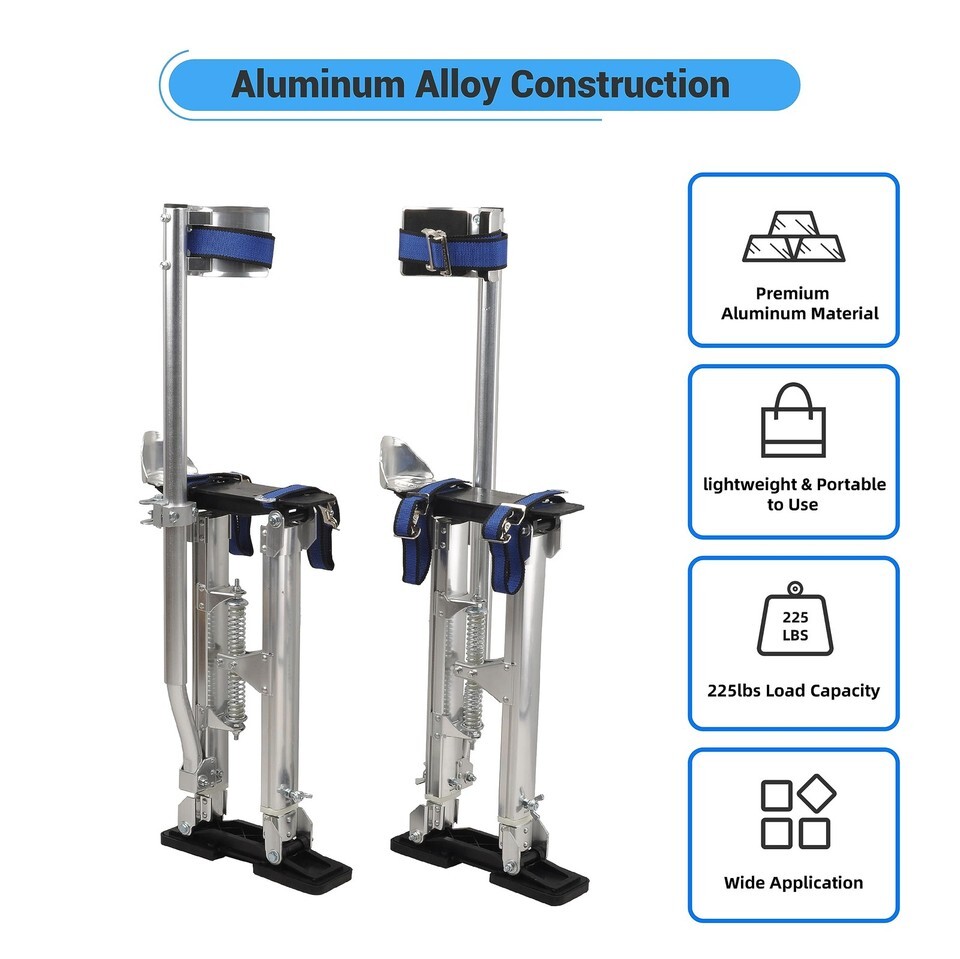 ??Premium Material?:These painter drywall stilts are made of lightweight aluminum alloy, sturdy and anti-rust which can be used for a long time. Comply with somatology and motion feature, lightweight construction for easy mobility. Stilt weight: 14.3 pounds per pair, Rated load: 225 pounds.