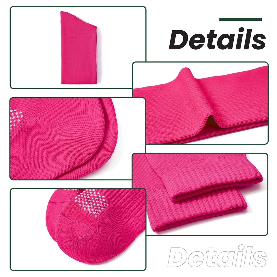 PERFORMANCE FEATURES: Our Over-The-Calf Socks have moderate support in arch and ankle to protect you when you run on the sports field, add stability and help reduce foot fatigue for a perfect fit. Cushion on the toe and sole with thicker yarn reduces the impact and friction when your move. Reinforced heel and toe ensure socks will hold up over time.