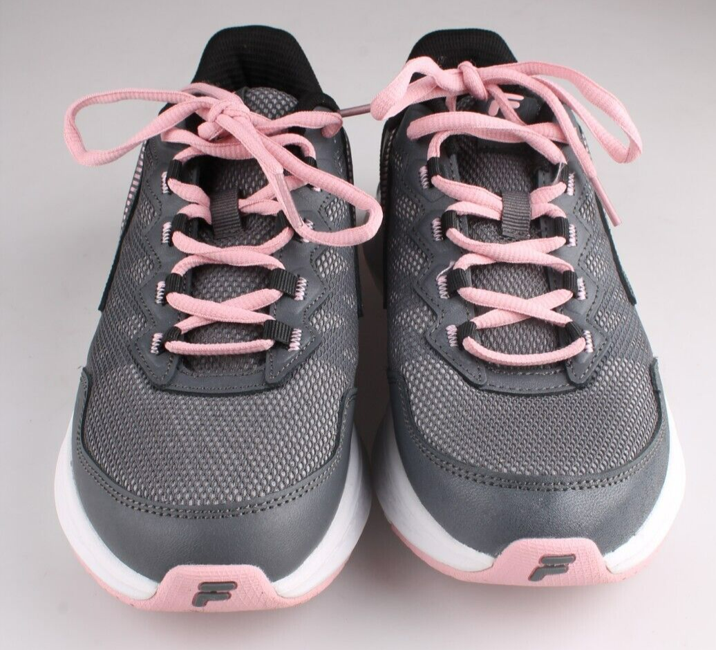 La zapatilla de corredores de jogging sendero de suspenso de mujeres FILA. ¡Nuevo en la caja! Camino de color rosa, gris y blanco. Zapatillas deportivas diseñadas para correr y trotar. Perfecto para mujeres que buscan un zapato elegante y de apoyo para sus actividades al aire libre.