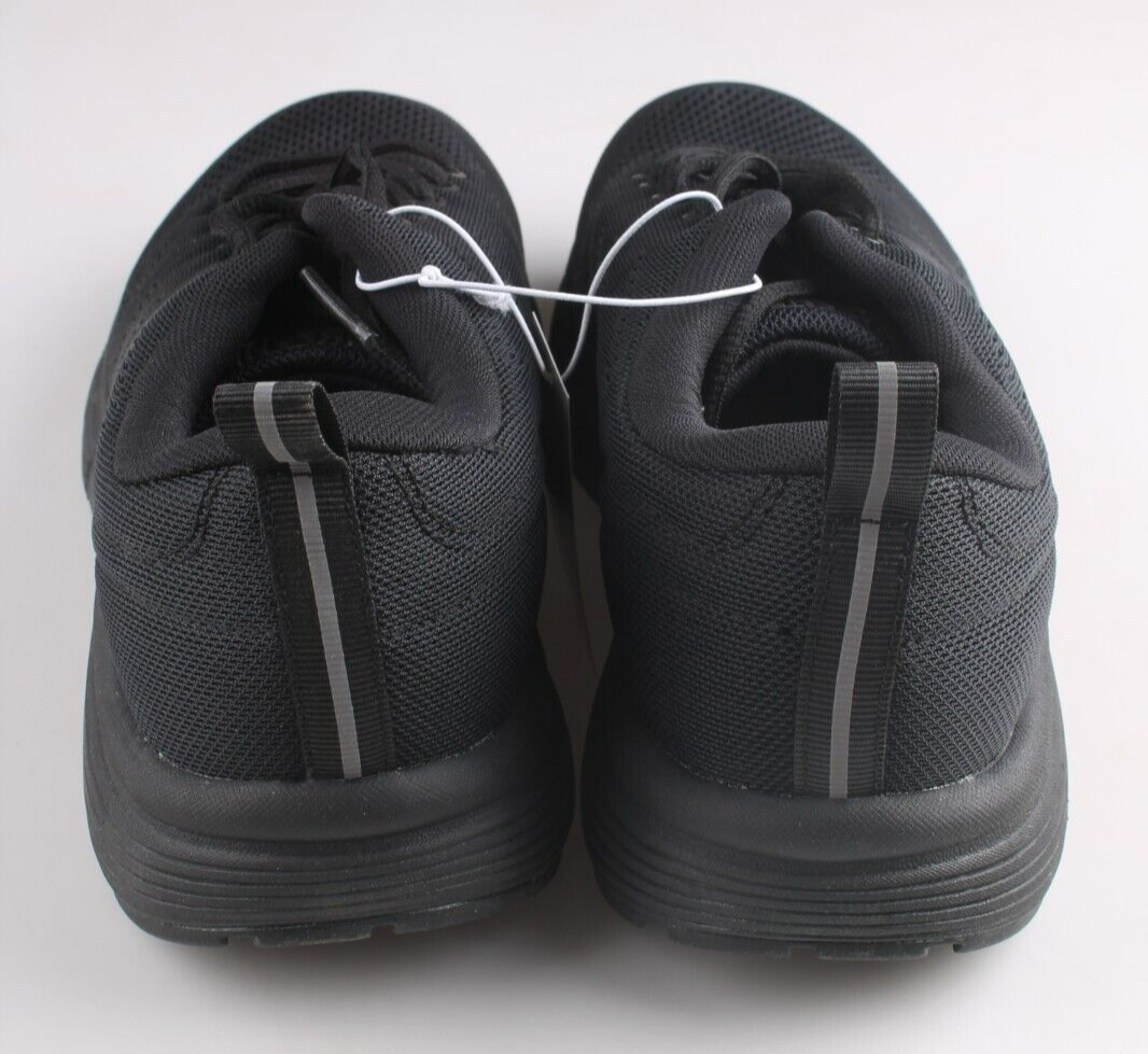 La zapatilla de caminante de la zapatilla de deporte para hombres de Kirkland Signature Black. ¡Nuevo con las etiquetas! Repelente de agua y resistente a las manchas Suela exterior resistente a la deslizamiento Loner de entresuela y calcetín acolchado Pestaña de tirar con detalle reflectante Cuenta con un diseño solido con un material superior sintetico. Estos zapatos informales estan diseñados para la comodidad y son adecuados para hombres.
