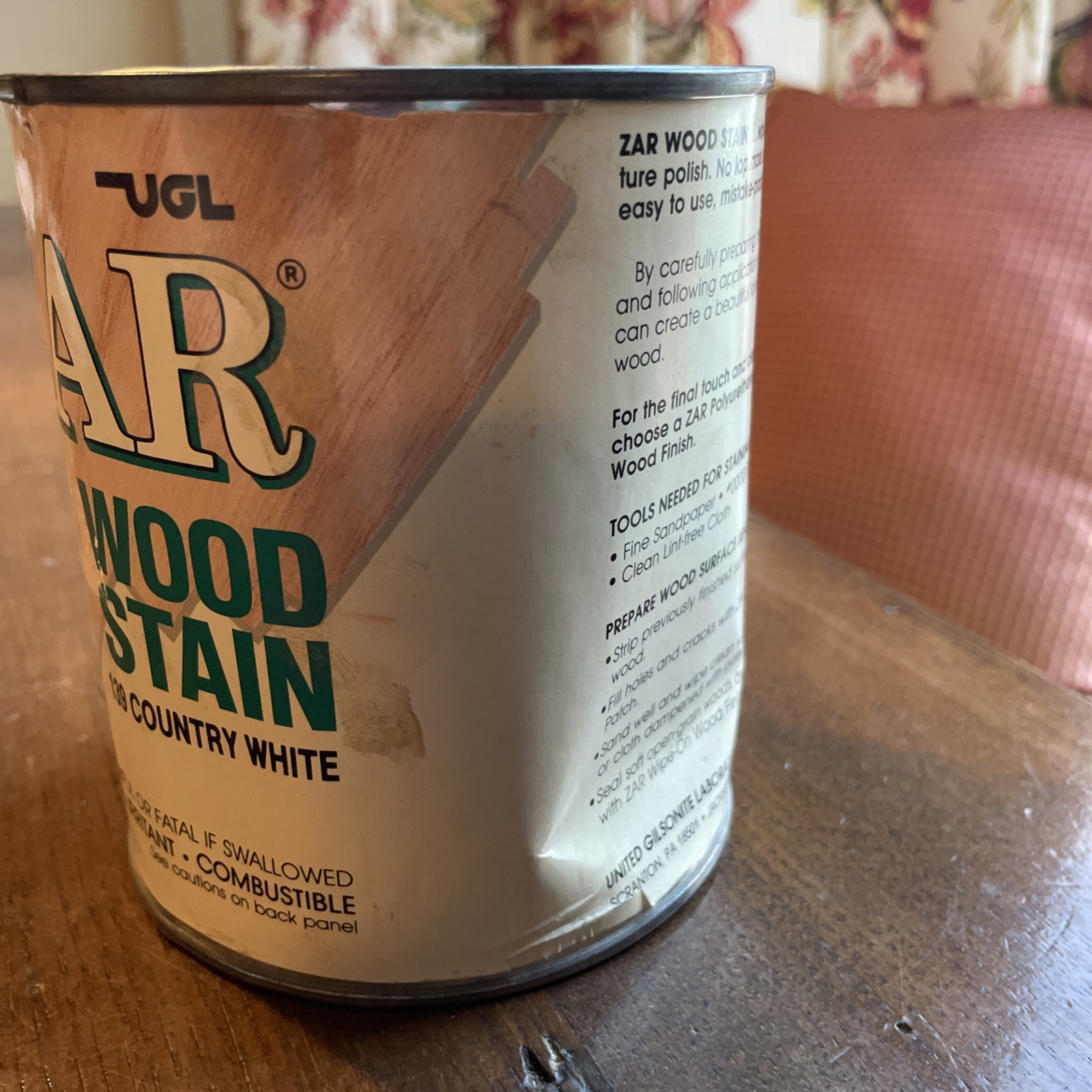 - ZAR Wood Stain 139 COUNTRY WHITE Quart Dented Can