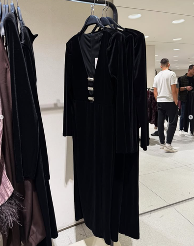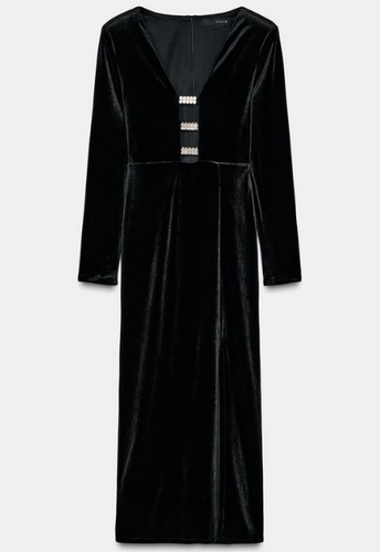 - ZARA BNWT 2025. BLACK VELVET MIDI DRESS SHINY APPLIQUES. 7969/253/800
