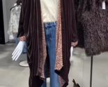 - ZARA BNWT 2025. BROWN VELVET KIMONO COAT ASYMMETRIC HEM. 8869/128/700