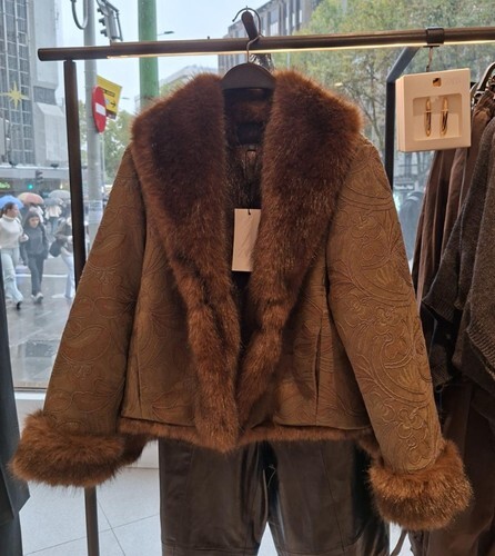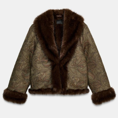 - ZARA BNWT 2025. DARK KHAKI DOUBLE FACED FUR JACKET EMBROIDERED. 8372/248/507