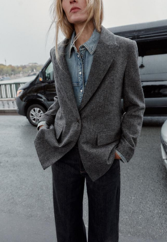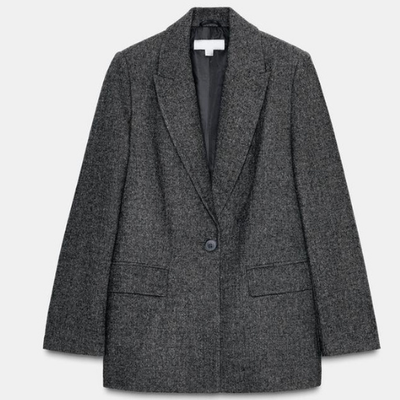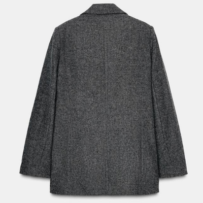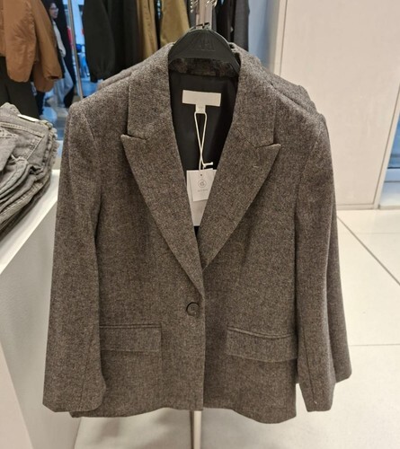 - ZARA BNWT 2025. GREY TAN HERRINGBONE WOOL BLAZER. 3046/388/102