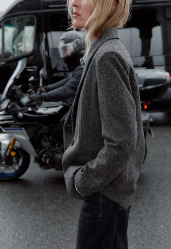 ZARA BNWT 2025. GREY TAN HERRINGBONE WOOL BLAZER. 3046/388/102