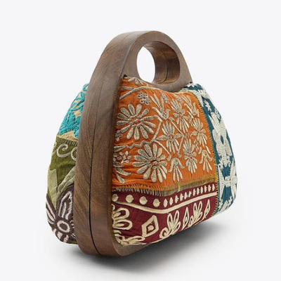 - ZARA BNWT 2025. PATCHWORK EMBROIDERED WOODEN BOX BAG CLUTCH. 0024/201/330