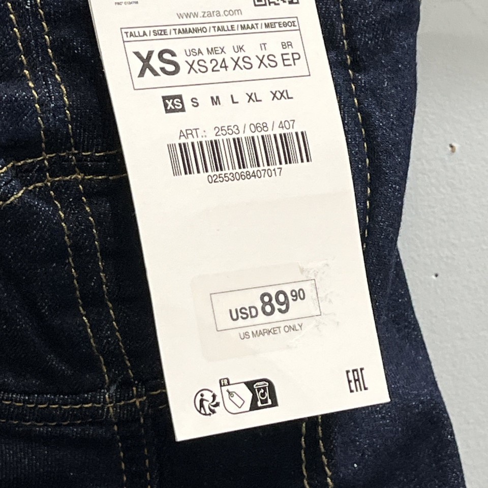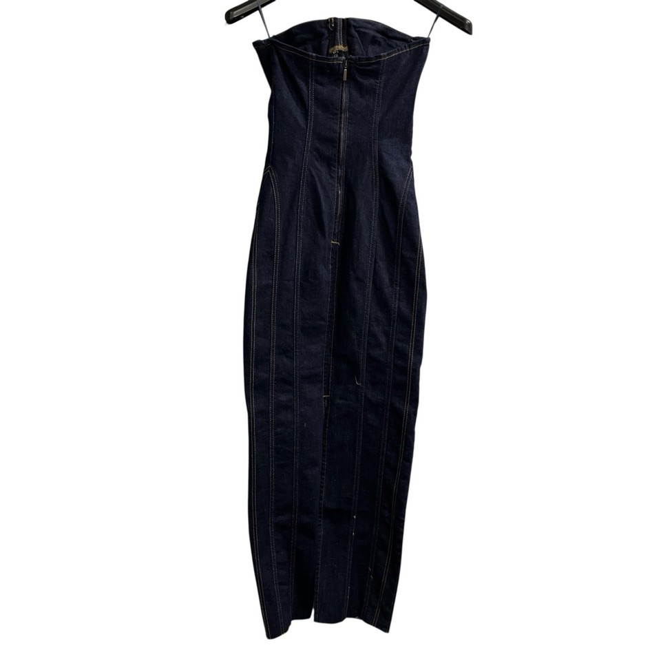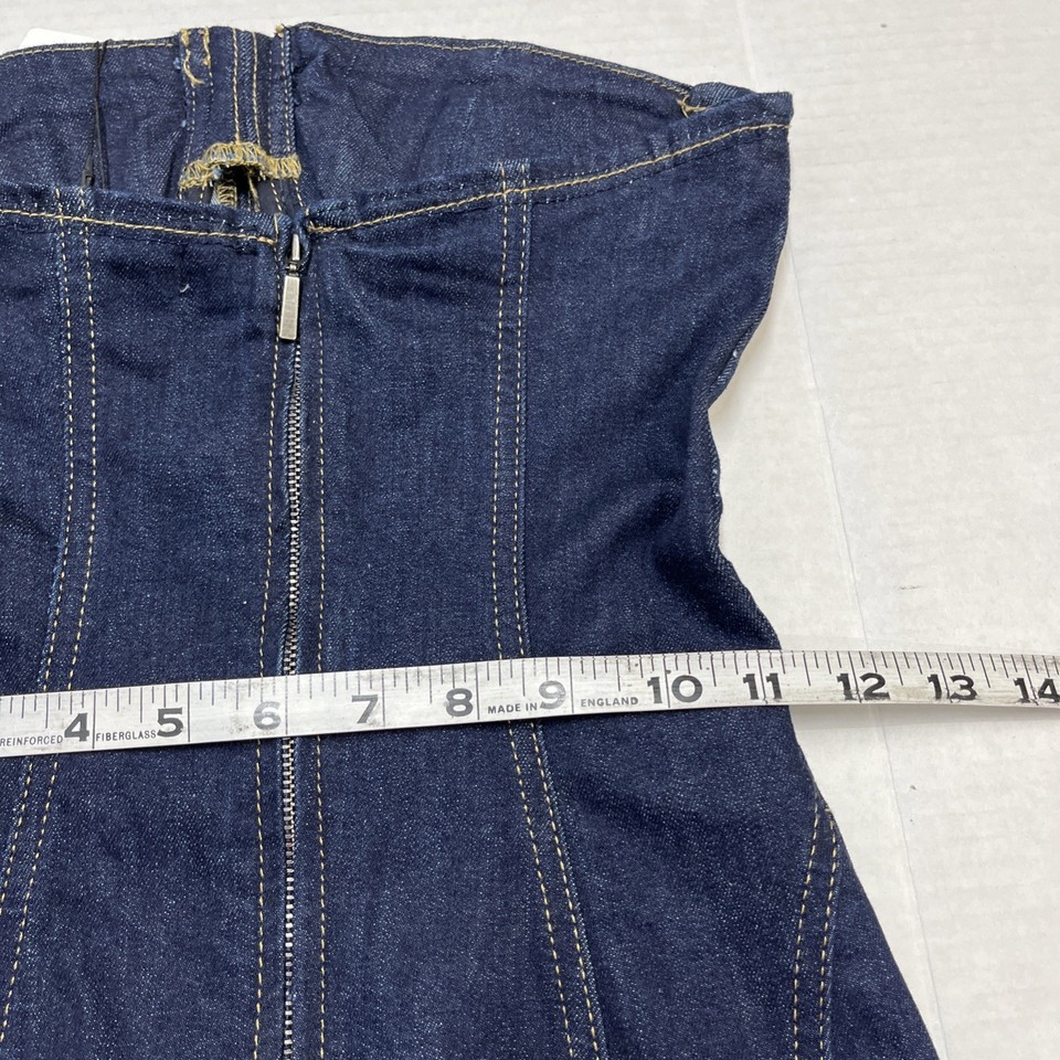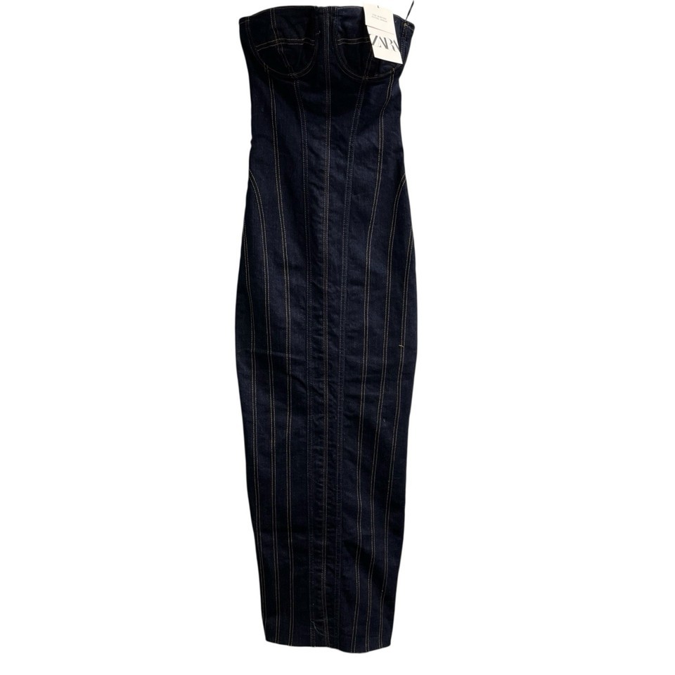 - Zara Dress Women XS Dark Denim Bustier Bodycon Corset Topstitched Maxi Strapless