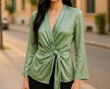 - Zara Green Satin Mini Long Sleeve Tie Waist Party Cocktail Blouse Work Size S