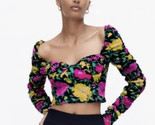 Zara Womens Floral Multicolored Blouse Sweetheart Neck sz XS