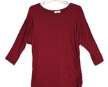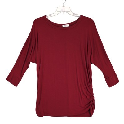 Zenana Women's 1X Burgundy Dolman Sleeve Top, Stretch Tunic Ruched Boho Country