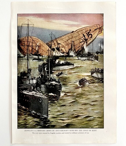 - Zeppelin L-15 Blimp Shot Down Kent Coast WW1 Color Print 1917 Nautical SmDwC4