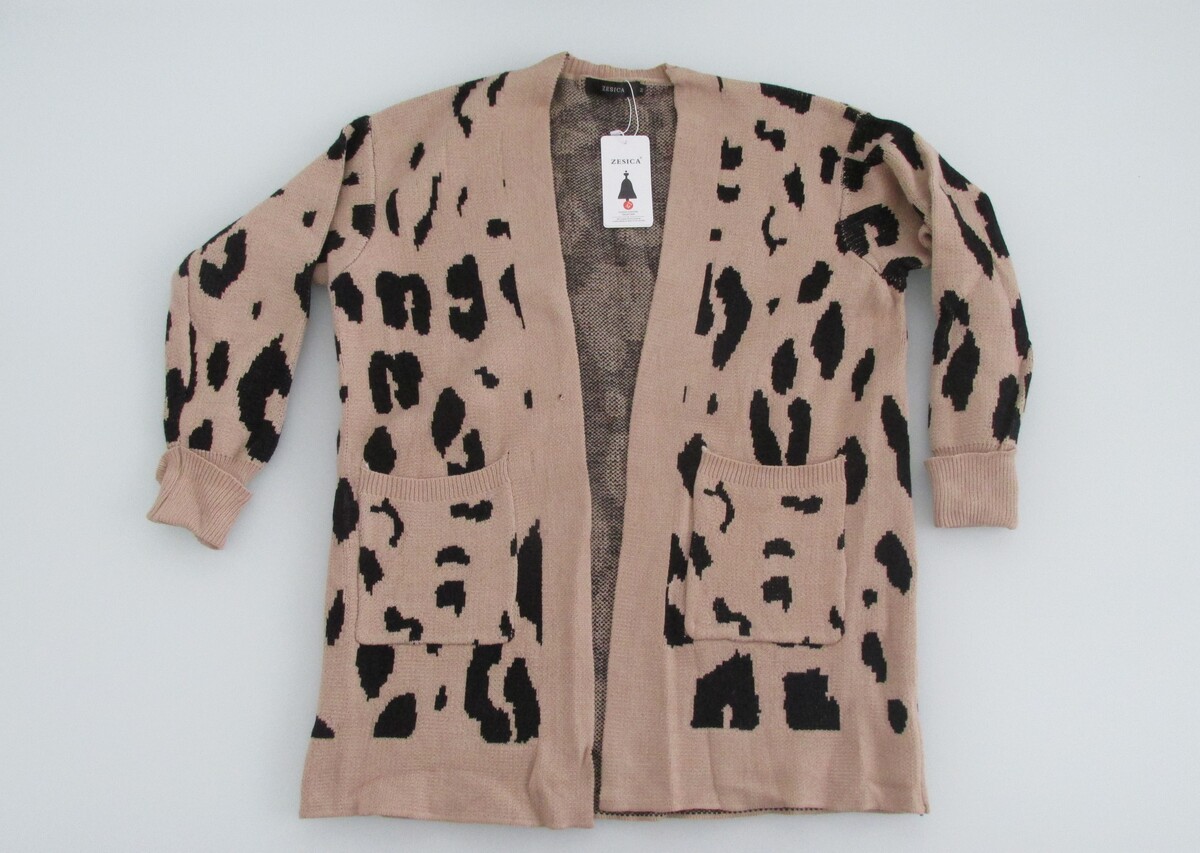 Description: Up for sale is a Zesica (NWT) women's open-front cardigan sweater. The size is medium and is made of 50%viscose/28%nylon/22%poly. This sweater has an animal print pattern in tan. Please note that pictures 1-2-5 are an accurate depiction of color.