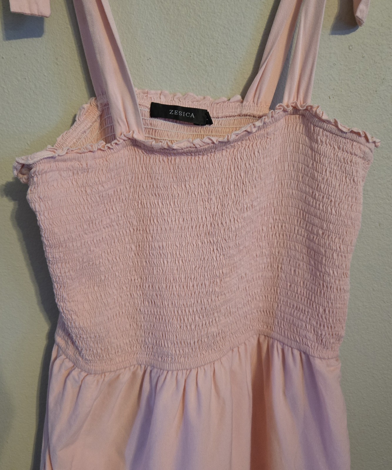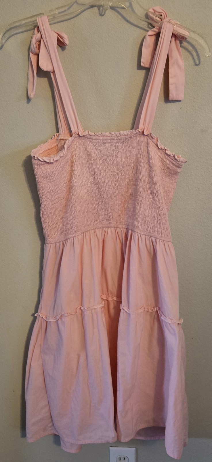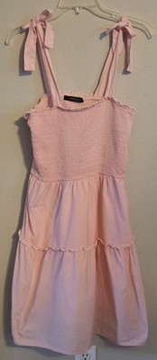 - Zesica Smocked Dress Womens Medium Pink Tie Shoulder Sleeveless Midi Sundress