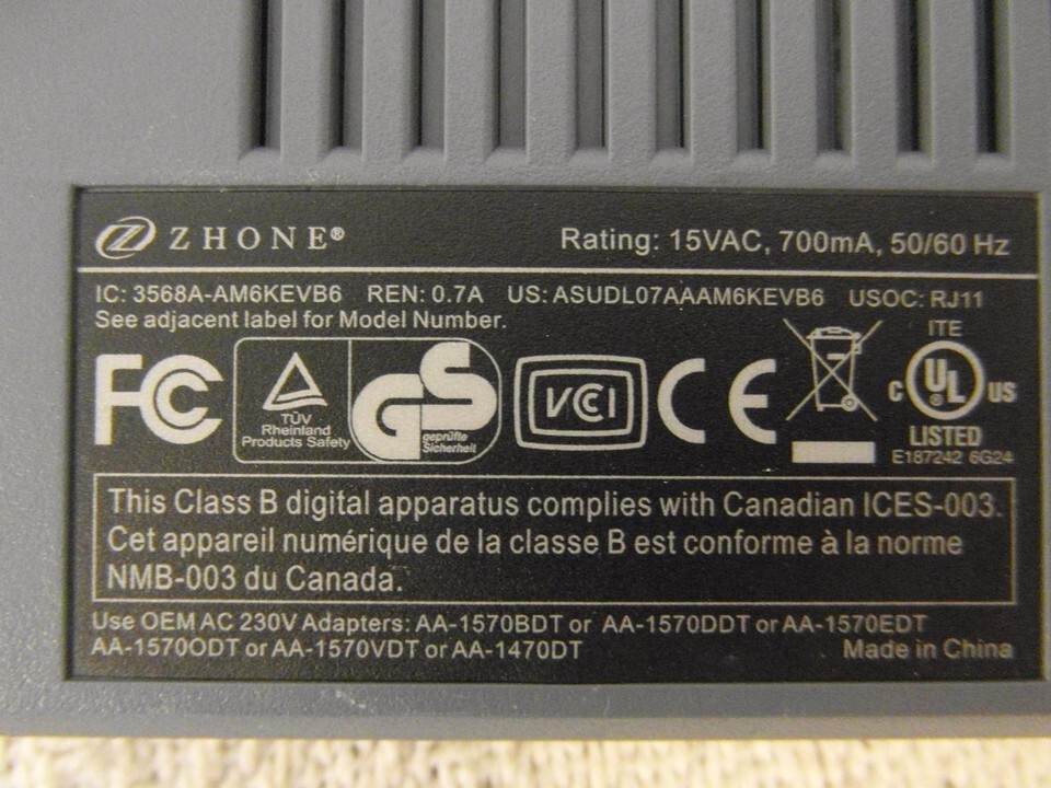- Zhone 6211-I3-200 ADSL2 + CPE W/ Phone Filter Gray DSL Internet Modem 33584