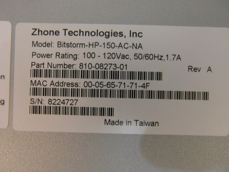 - Zhone Bitstorm-HP HP-150-AC-NA 100-120Vac 50/60Hz IP DSLAM 30182