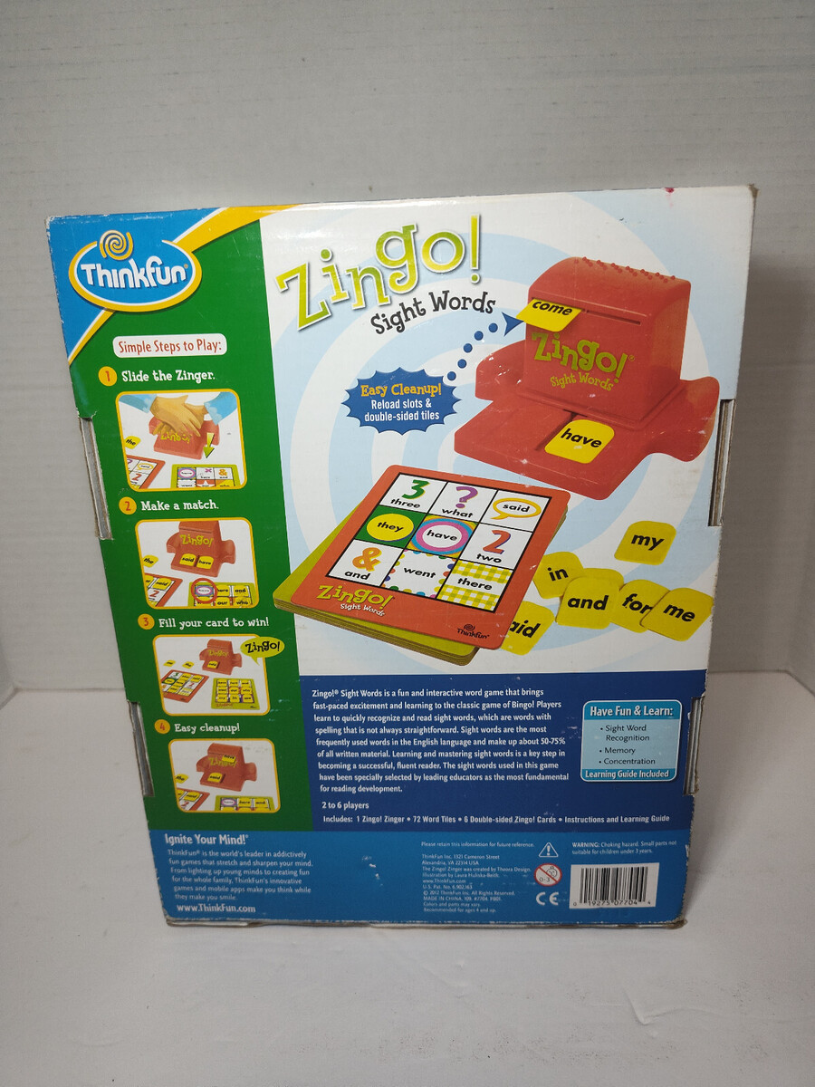 ZINGO SIGHT WORDS Board Game 100% COMPLETE 2012 Educational - REPACKED