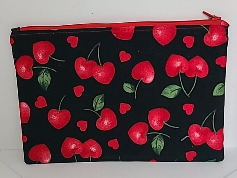 - Zippered Pouch Make-Up Bag Pencil Case Handmade Hearts Cherries Valentine's Day