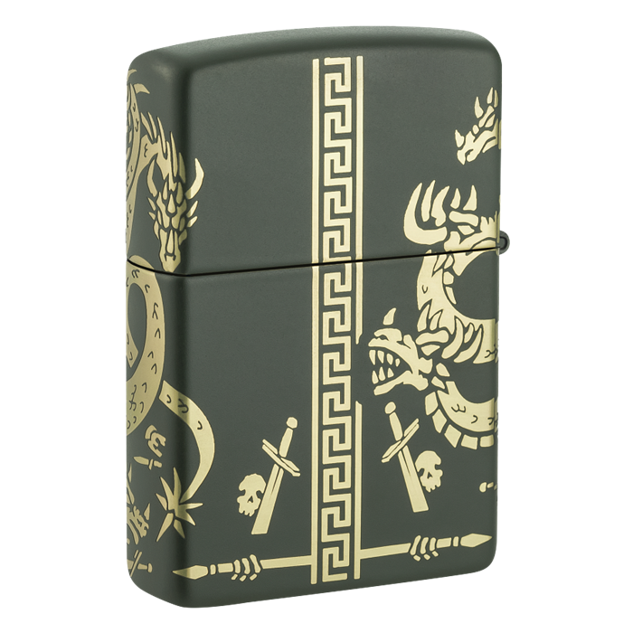 Zippo Lighter - Dragon & Skulls Green Matte - 856033