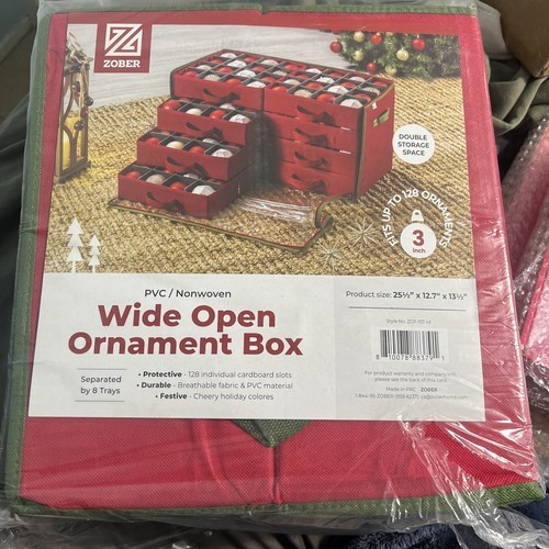 - Zober 8 Trays Wide Open Ornament Box 128 Slots 25.5x12.7x13.5 Fits 3” Ornaments
