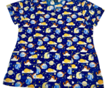 Zoe + Chloe Sleeping Moon Kitty Cats Celestial Stars Sz Large Scrub Shirt Blue