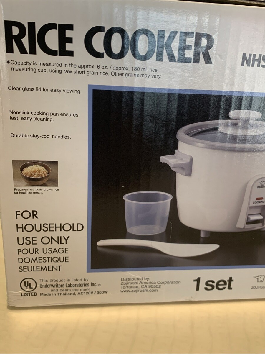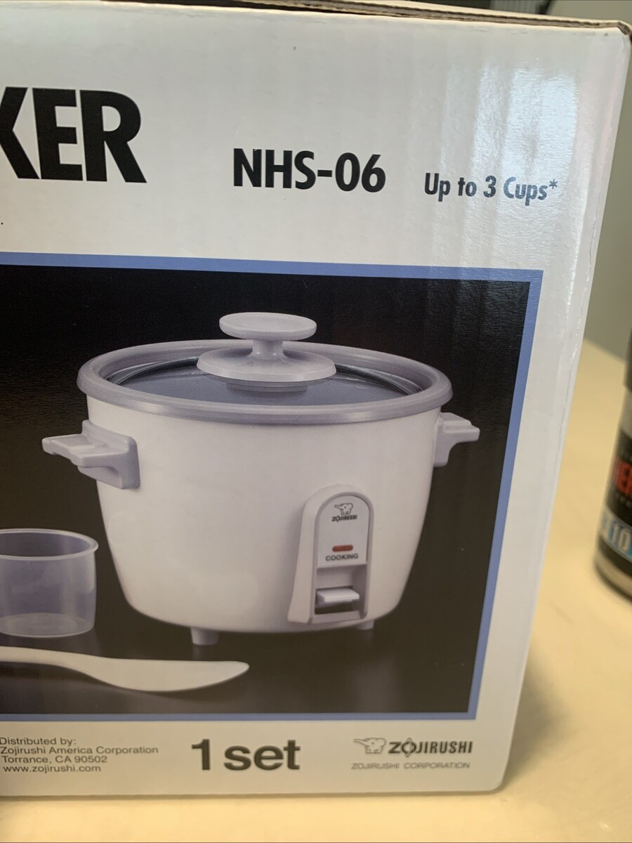 - Zojirushi NHS-06 3-Cup Uncooked Rice Cooker, White -WB New Open Box