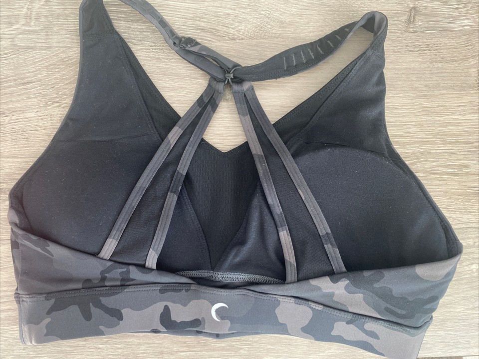 Worn only one time! Great sports bra it just wasn’t my style. You can cross cross it with adjustable straps or over the shoulder. Good support for the girls!