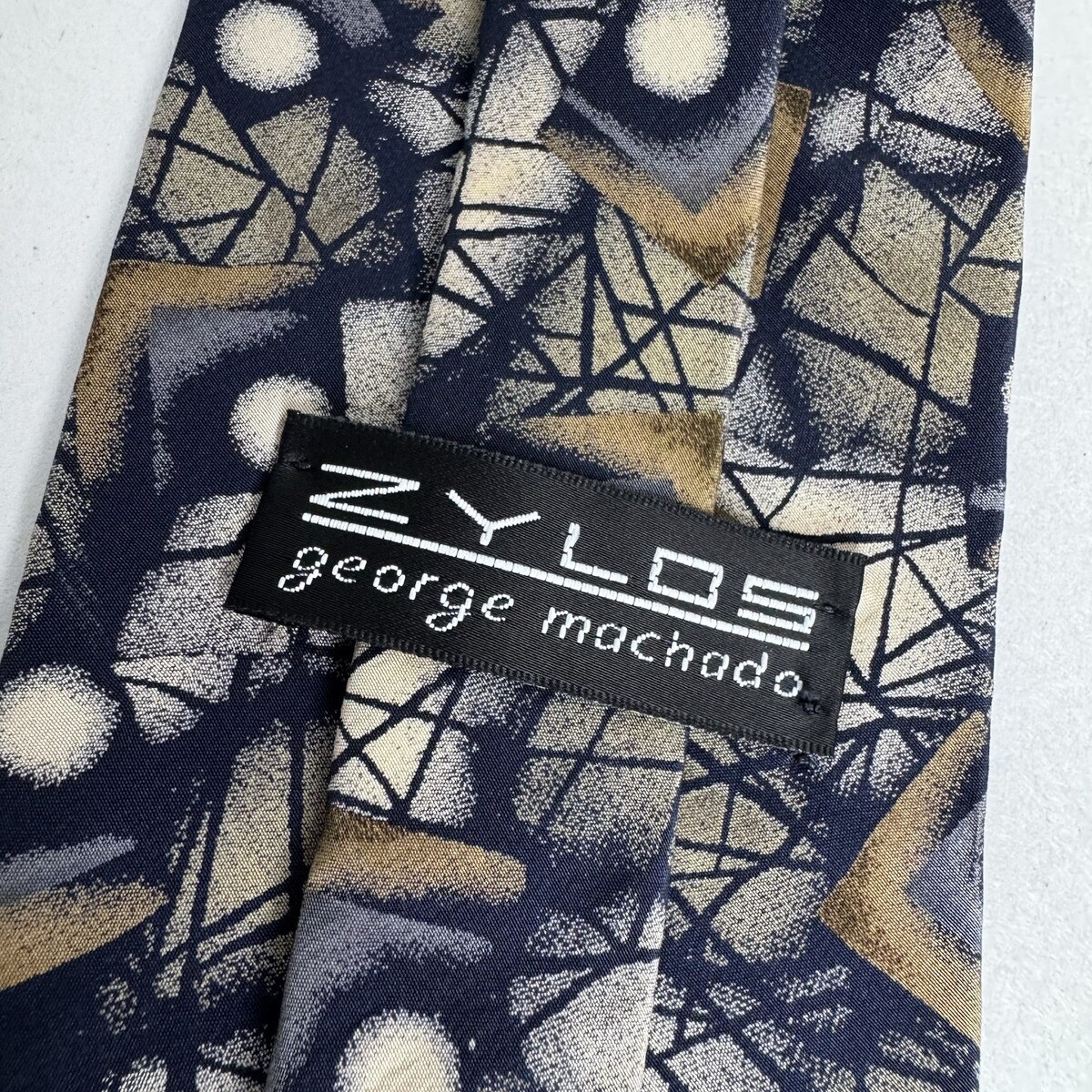 Zylos George Machado Men's Necktie Tie Geometric Blue Silk Vintage Abstract