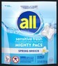 all Mighty Pacs Laundry Detergent Pods, Sensitive Fresh, Spring B |