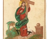 antique German Catholic holy card Christ cross hand colored 1800 religion Christ