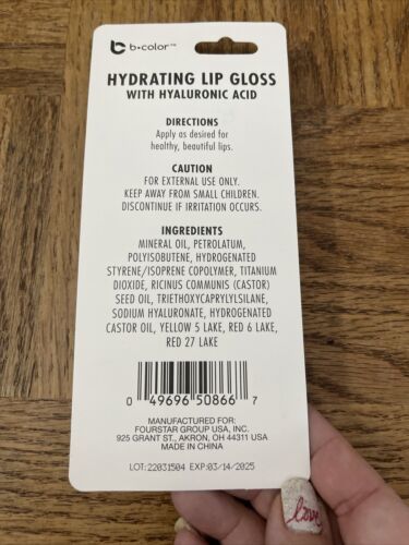 b Color Hydrating Lip Gloss With Hyaluronic Acid Fire Quartz-Brand New-SHIP24HRS
