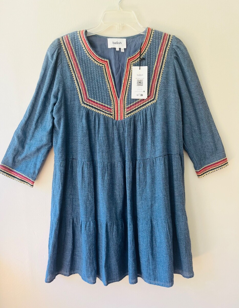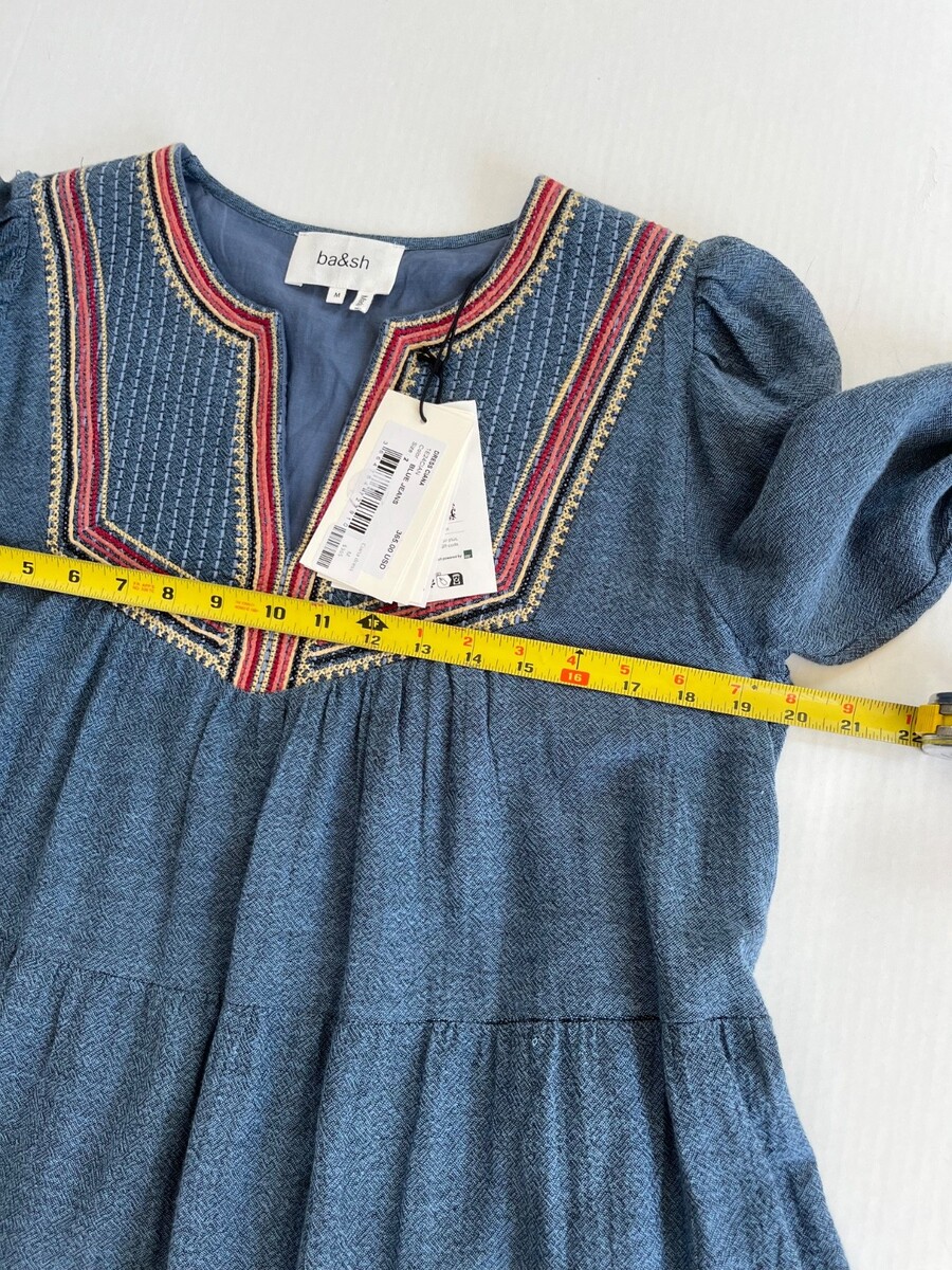 - ba&sh Sz M Ciana Midi Lined Organic Cotton Dress V Neck Elbow Sleeves