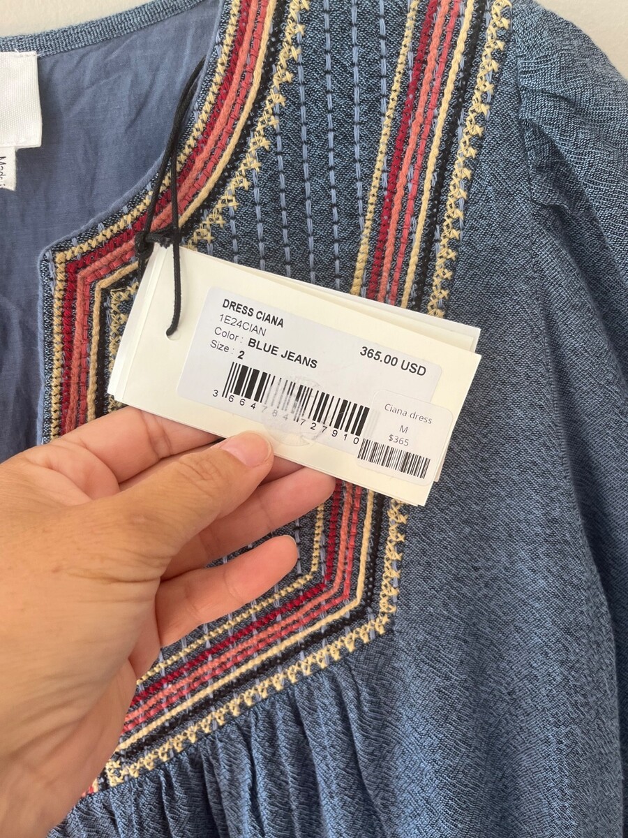 ba&sh Sz M Ciana Midi Lined Organic Cotton Dress V Neck Elbow Sleeves