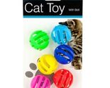 Give your cats the gift of endless fun with this 6-piece balls with bells cat toys set featuring colorful vented plastic balls with metal bells inside to entice cats. Each ball measures approximately 1.5" in diameter.