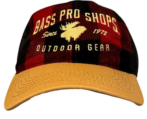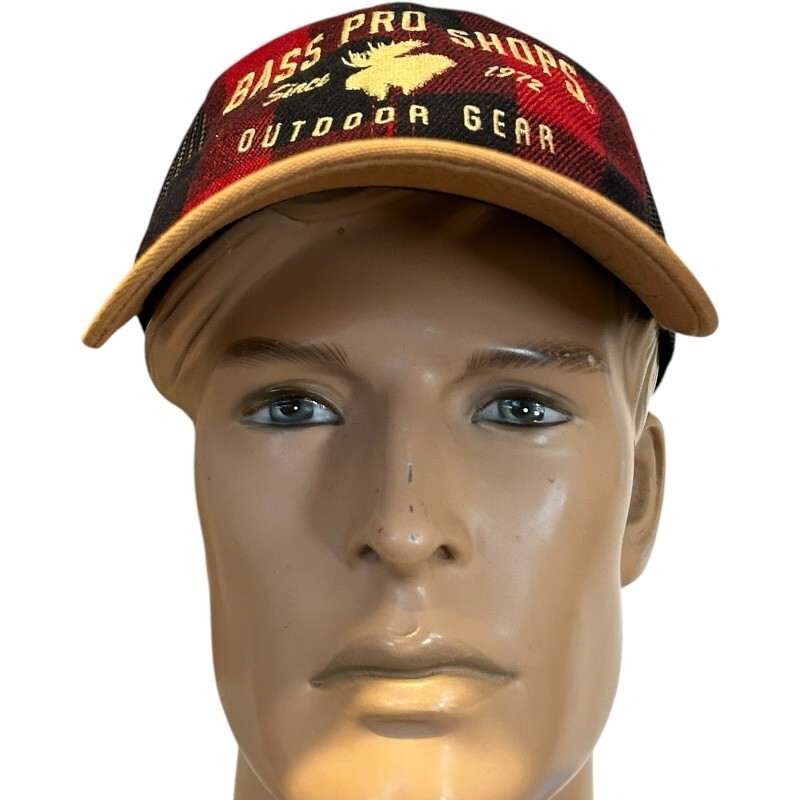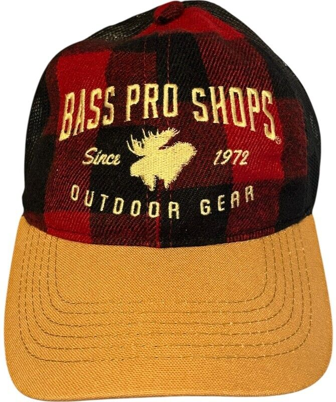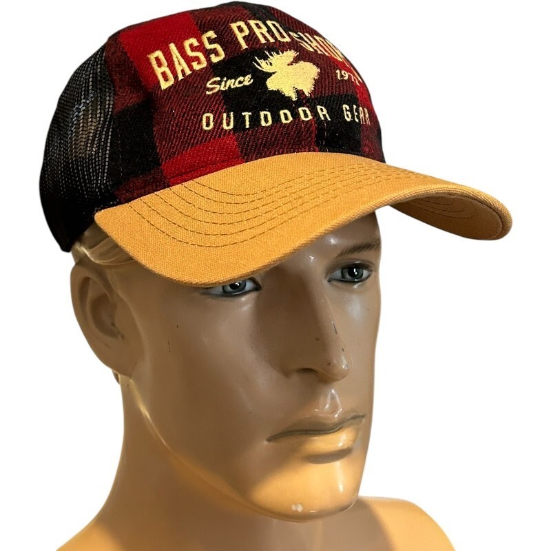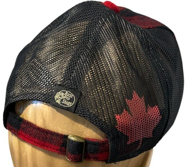 - bass pro shops red buffalo plaid flannel mesh back hat moose canadian maple leaf