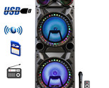 beFree Sound Rechargeable Bluetooth 12inch Double Subwoofer Portable Party Speaker with Dual Layer Reactive Party Lights, USB, SD and AUX Inputs with FM Radio