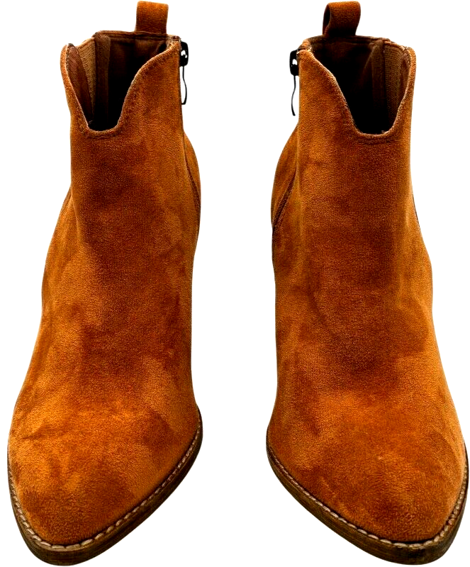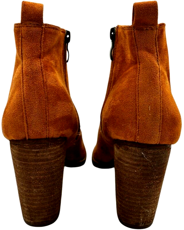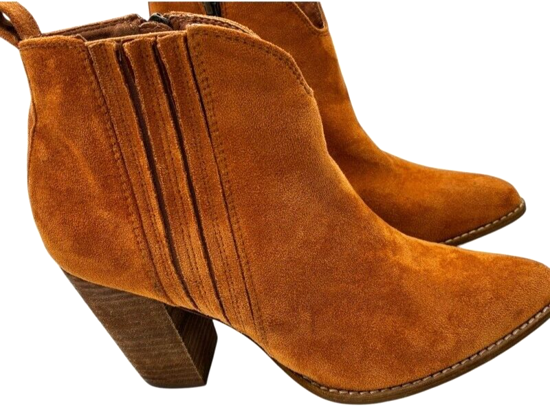 - beast fashion women's camel suede 3.5 in heeled zip-up booties size 8.5 - EUC