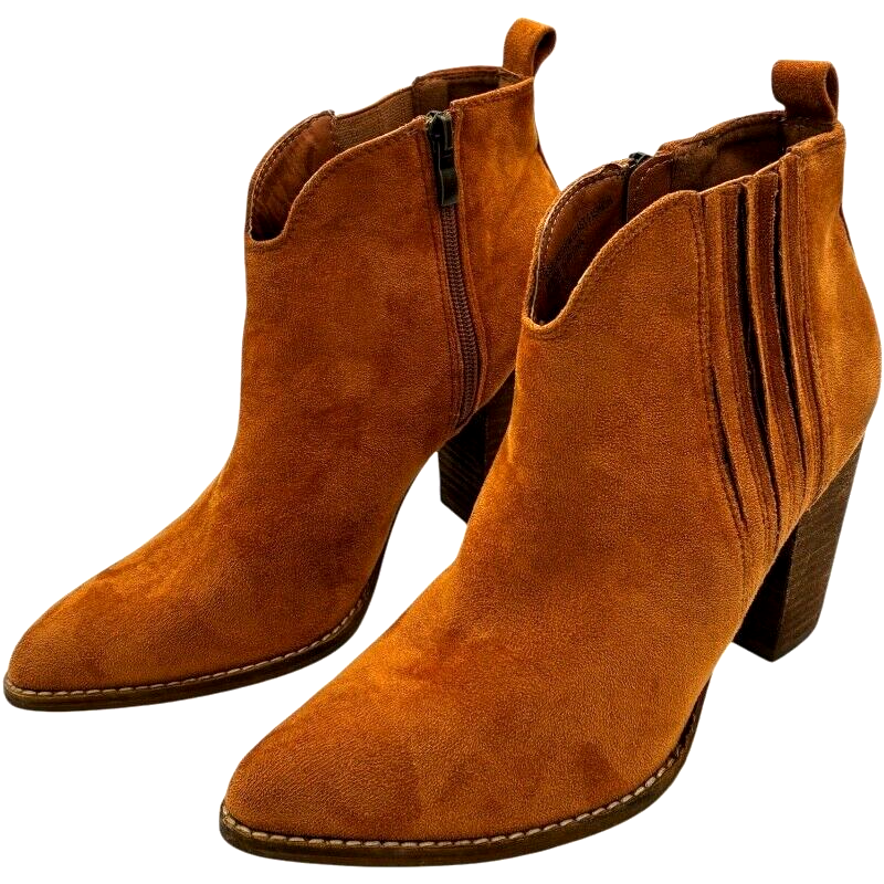 beast fashion women's camel suede 3.5 in heeled zip-up booties size 8.5 - EUC