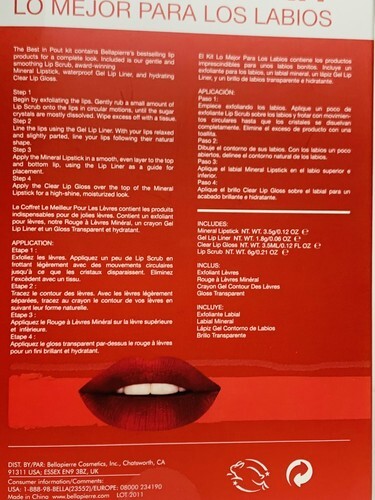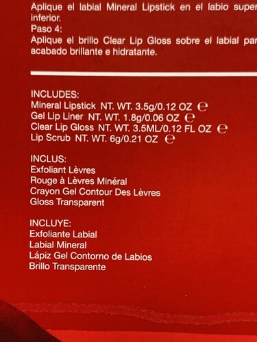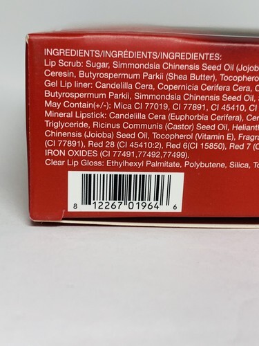 | Set Includes: | Lip Scrub, Lipstick, Lip Liner, Clear Lip Gloss |