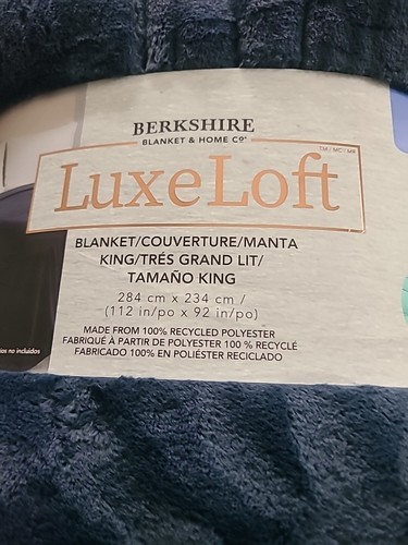 - Berkshire King size Plush Solid LuxeLoft Blanket Dark Blue 112" x 92" Comfy soft