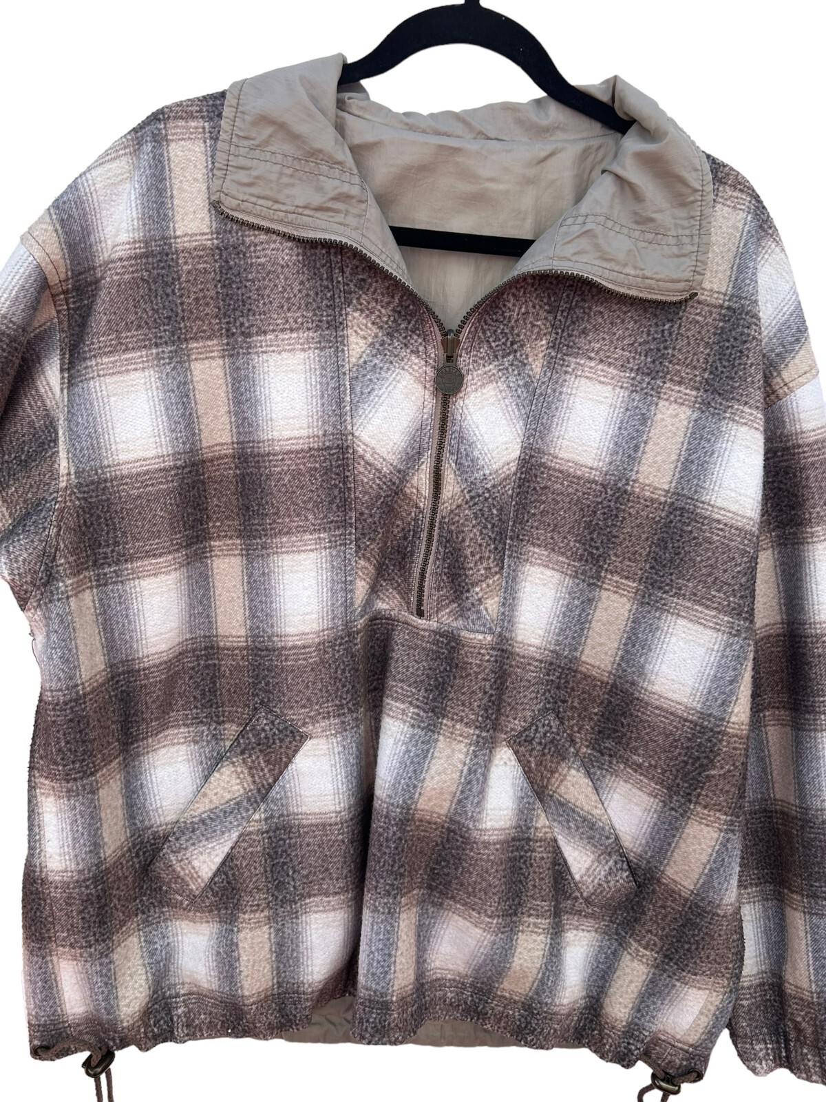 braetan sport reversible flannel 1/2 zip pullover brown mens one size fits most made in ukraine