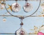 Beautiful Set of silver-tone Antique style ornaments and white plastic sea shells and brown crystal pearls beads necklace and earrings . Silver tone Victorian style necklace and earrings . Boho necklace . Bohemian necklace and earrings . Romantic necklace and earrings . Beautiful necklace with same style earrings with white brown crystal pearls beads.