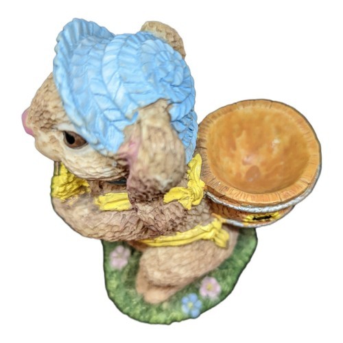 bunny figurine blue straw hat sun flower wood basket egg holder vintage Easter